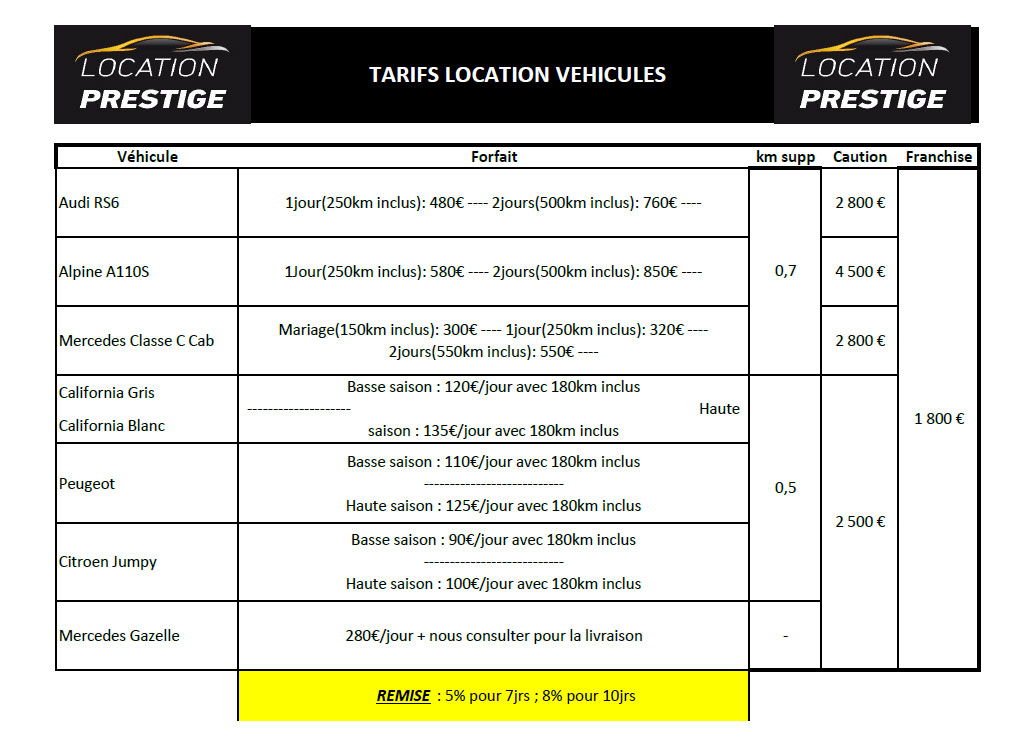 Grille de tarifs 2025